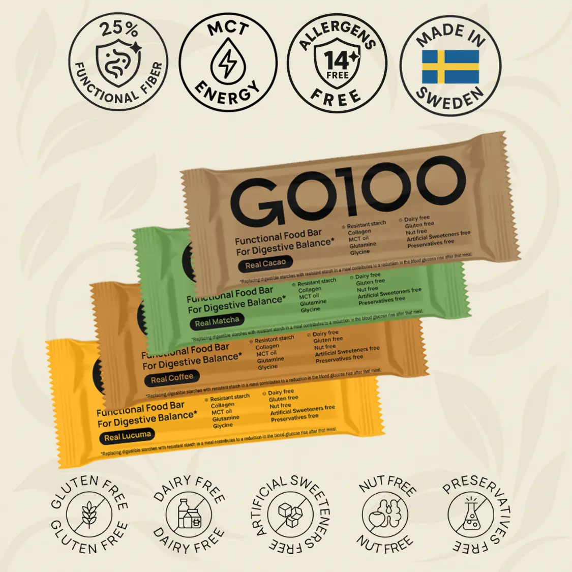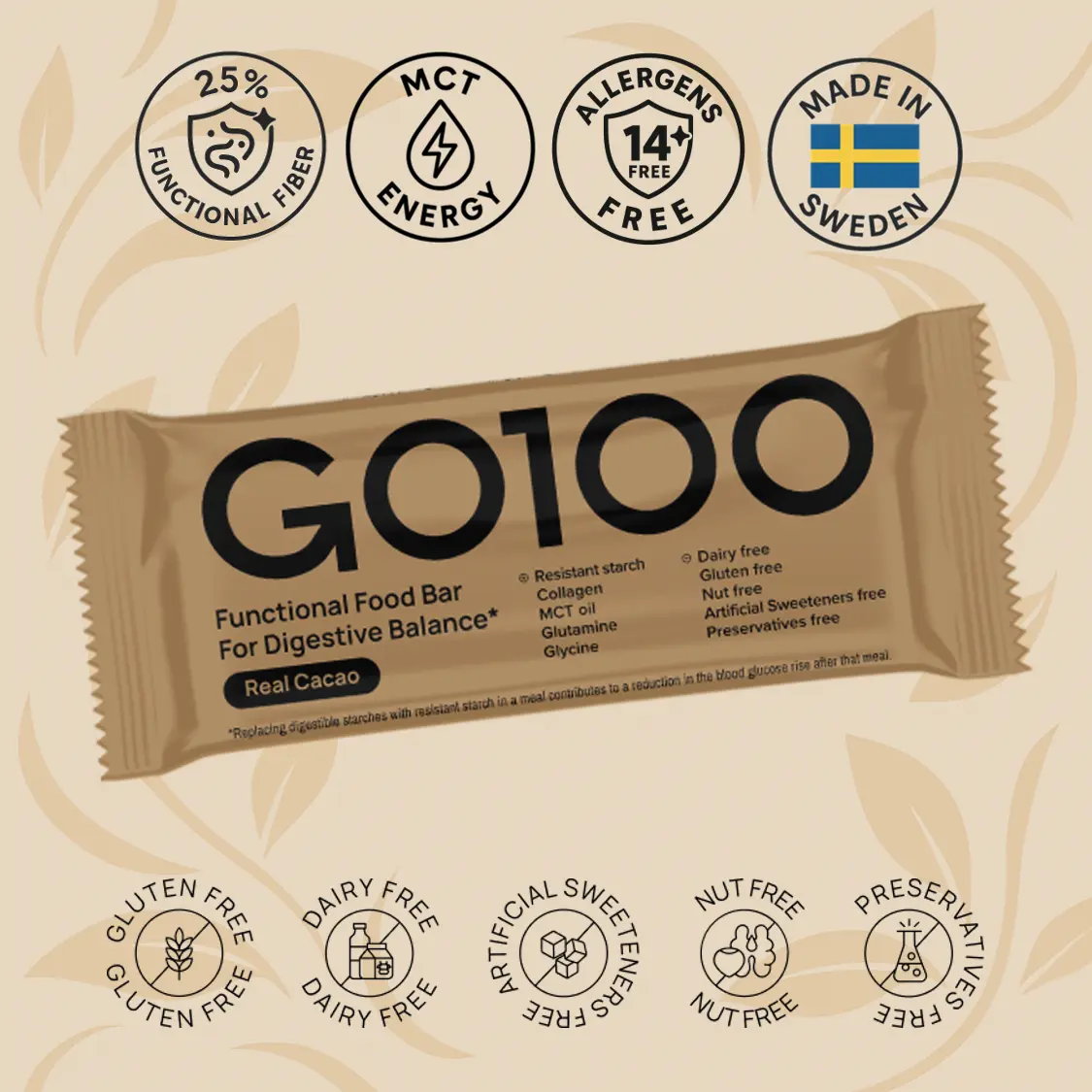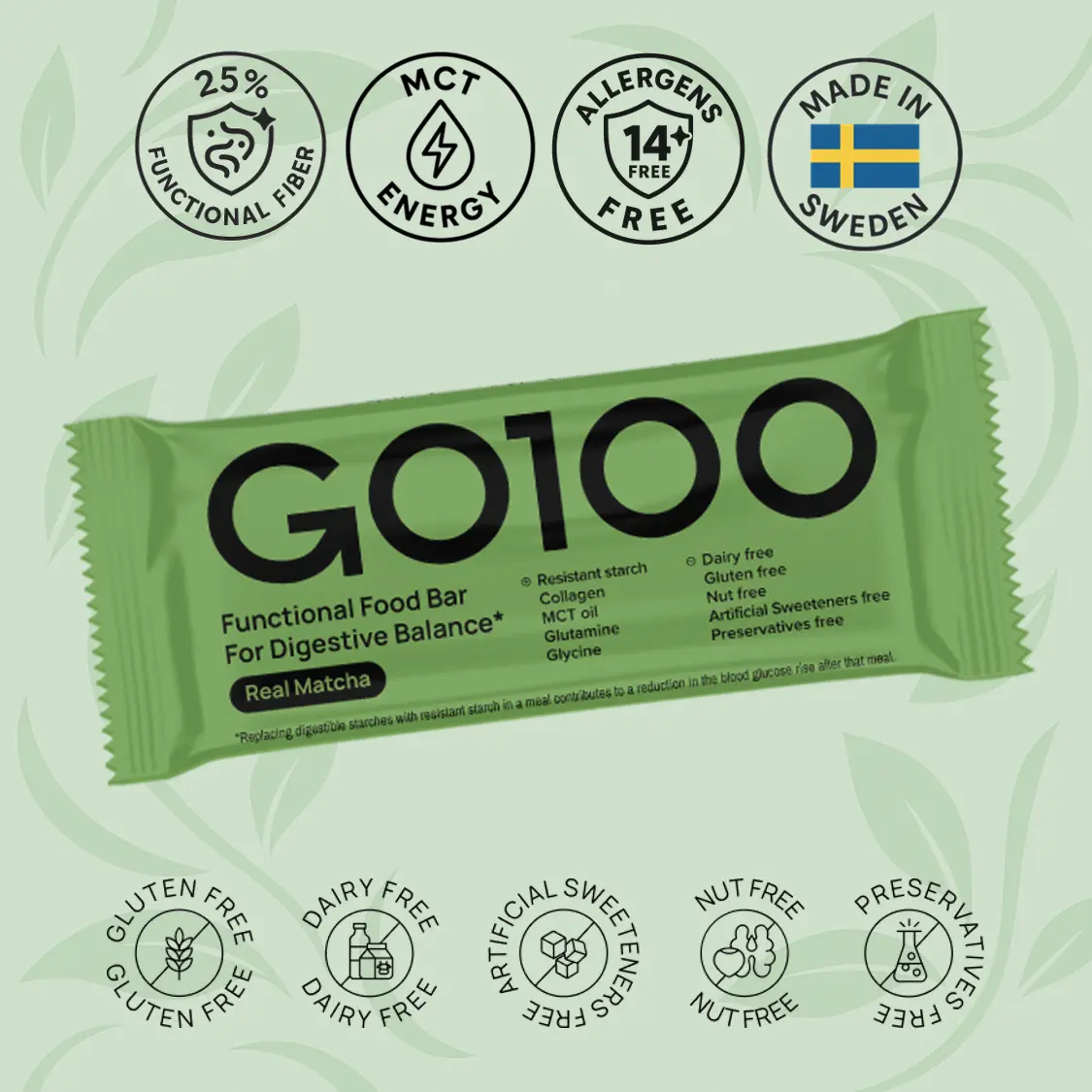 To minimize initial gastrointestinal discomfort, we suggest starting with half a GO100 bar per day for one week.