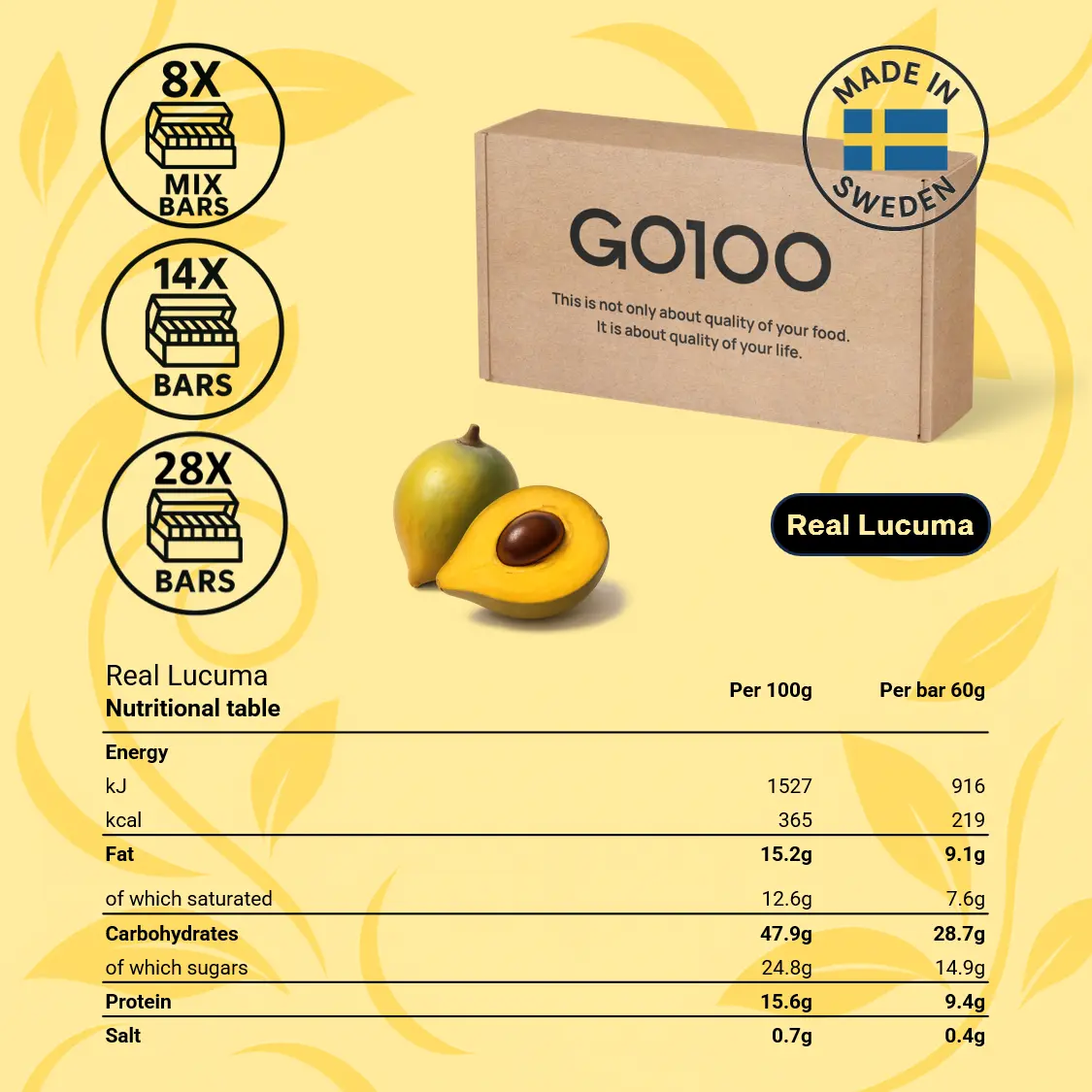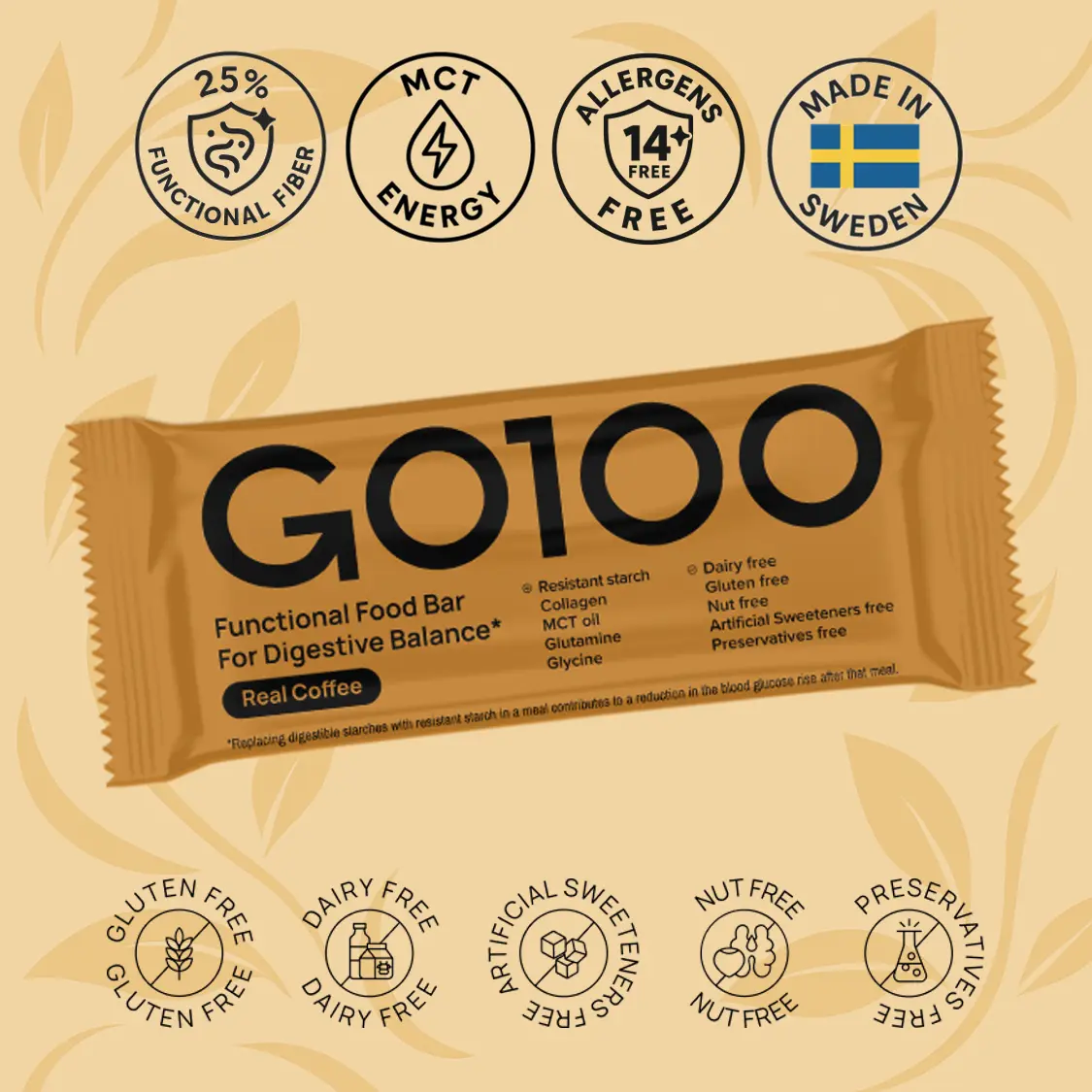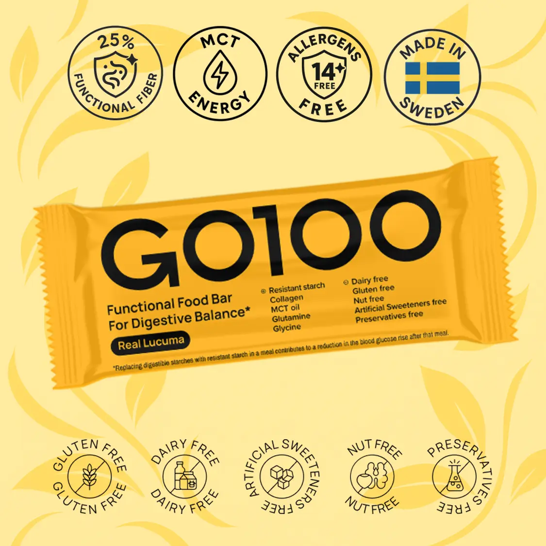 To minimize initial gastrointestinal discomfort, we suggest starting with half a GO100 bar per day for one week.
